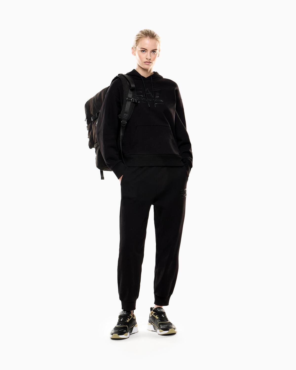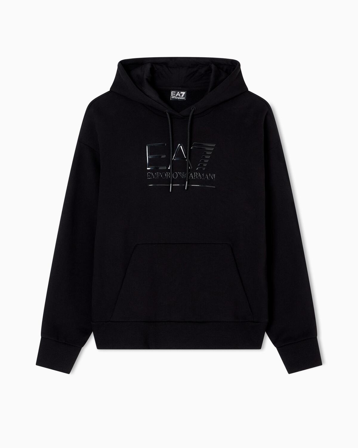 Felpa provvista di pratico cappuccio, realizzata in misto cotone stretch e caratterizzata dal logo EA7 in micro borchie sul petto. Un capo confortevole e versatile, ideale per l'allenamento leggero e il tempo libero.